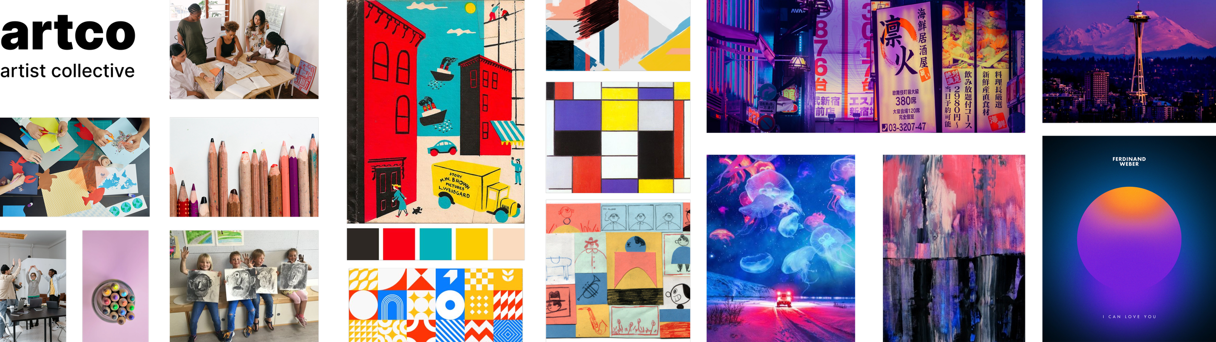Artco is an app for creatives seeking inspiration and support. To reflect this, the brand was crafted using colors that evoke a sense of calm and acceptance. The colors, along with playful lines and shapes, aim to create an imaginative atmosphere.