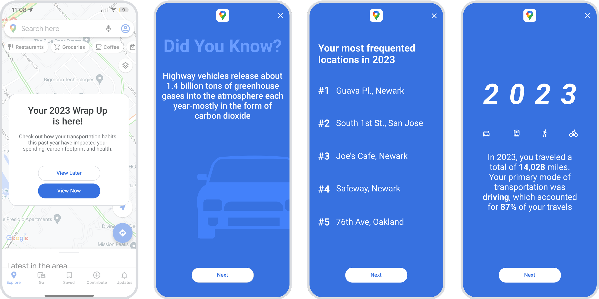 Google Maps Wrap Up is a feature that promotes sustainable transportation through raising awareness about personal transportation habits and providing opportunities for users to reduce their carbon footprint. Google Maps Wrap Up is a personal exploratory project and is not associated with Google or Alphabet Inc.
